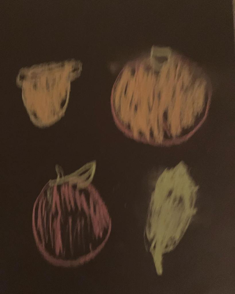 Chalk textured drawings are a great way to get in a soooky mood right before Halloween and Thanksgiving festivities. Black paper and chalk is all you need to light up your classroom decor. Chalk#Spooky drawings#fall#tezture#Halloween art!